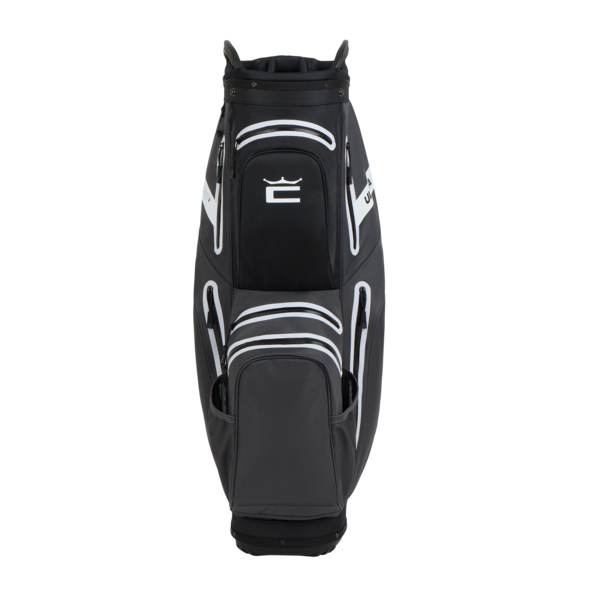 En vattentät vagnbag av högsta kvalitet. Alla sömmar är tejpade och alla blixtlås är vattentäta för att allt du förvara i bagen ska förbli torrt även i ihållande regn. Två stora fickor för extra kläder, platt baksida så att bagen ligger stabilt i vagnen, flera handtag för att lätt lyfta ur och i bilen, och låg vikt så att den är enkel att hantera. Tjockt vadderad axelrem när du behöver bära bagen. 14-delad topp så att varje klubba har sitt eget fack, gör att du lätt hittar rätt klubba.